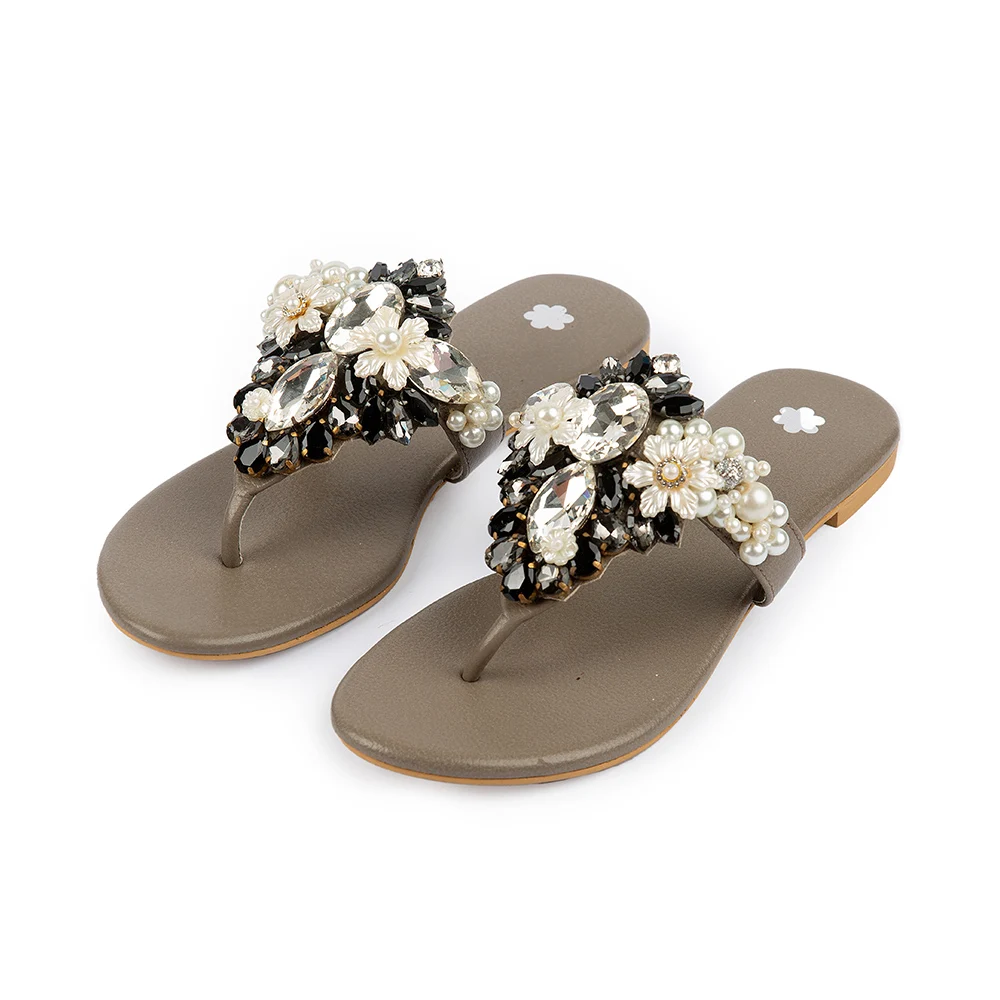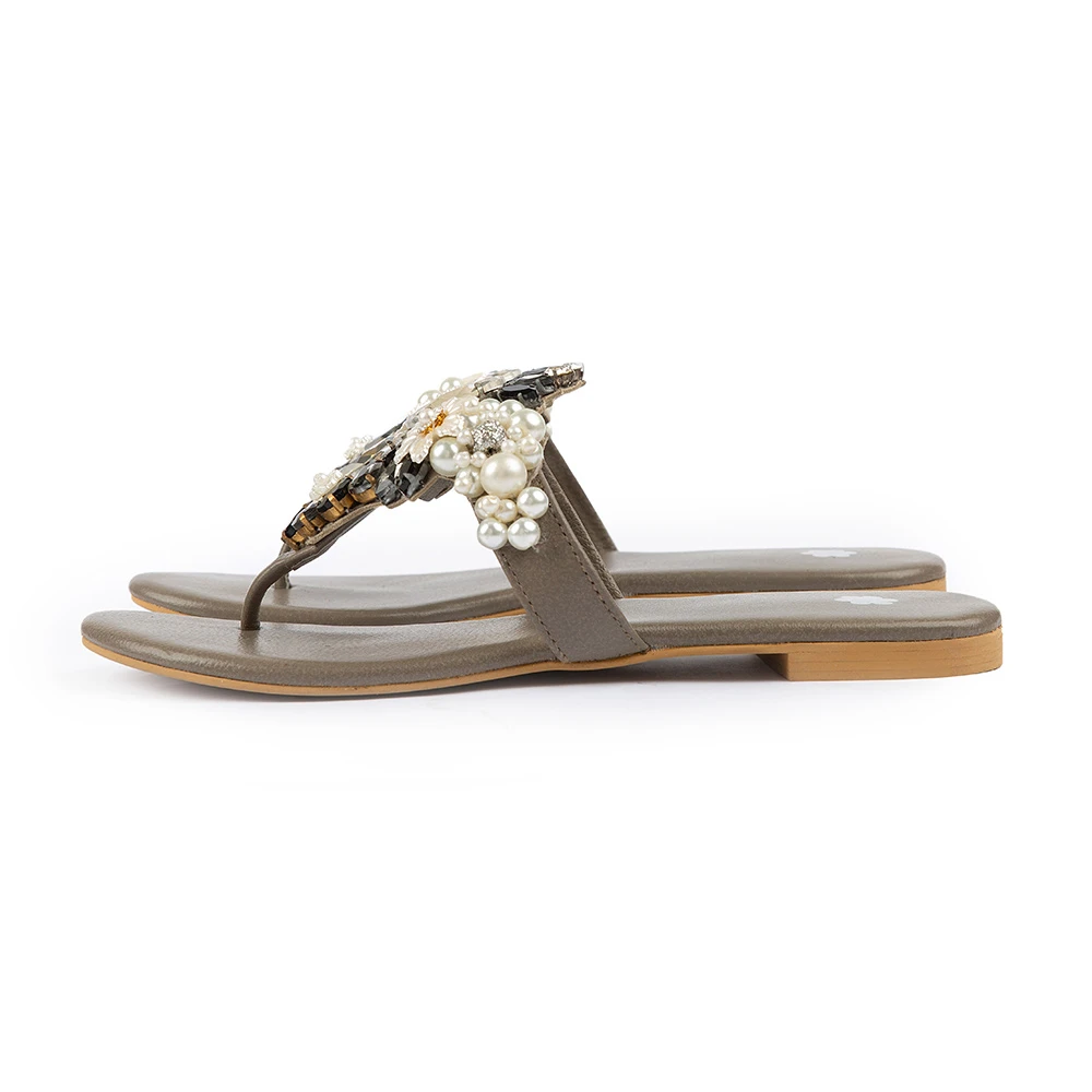 Turn heads in this genuine leather cream tone sandal – the upper features an ornate cluster of multicoloured crystals, pearls and floral accents, creating a vibrant yet elegant statement piece. With a cushioned insole for comfort, this sandal is perfect for festive occasions, weddings or evenings when you want to stand out with effortless glamour.