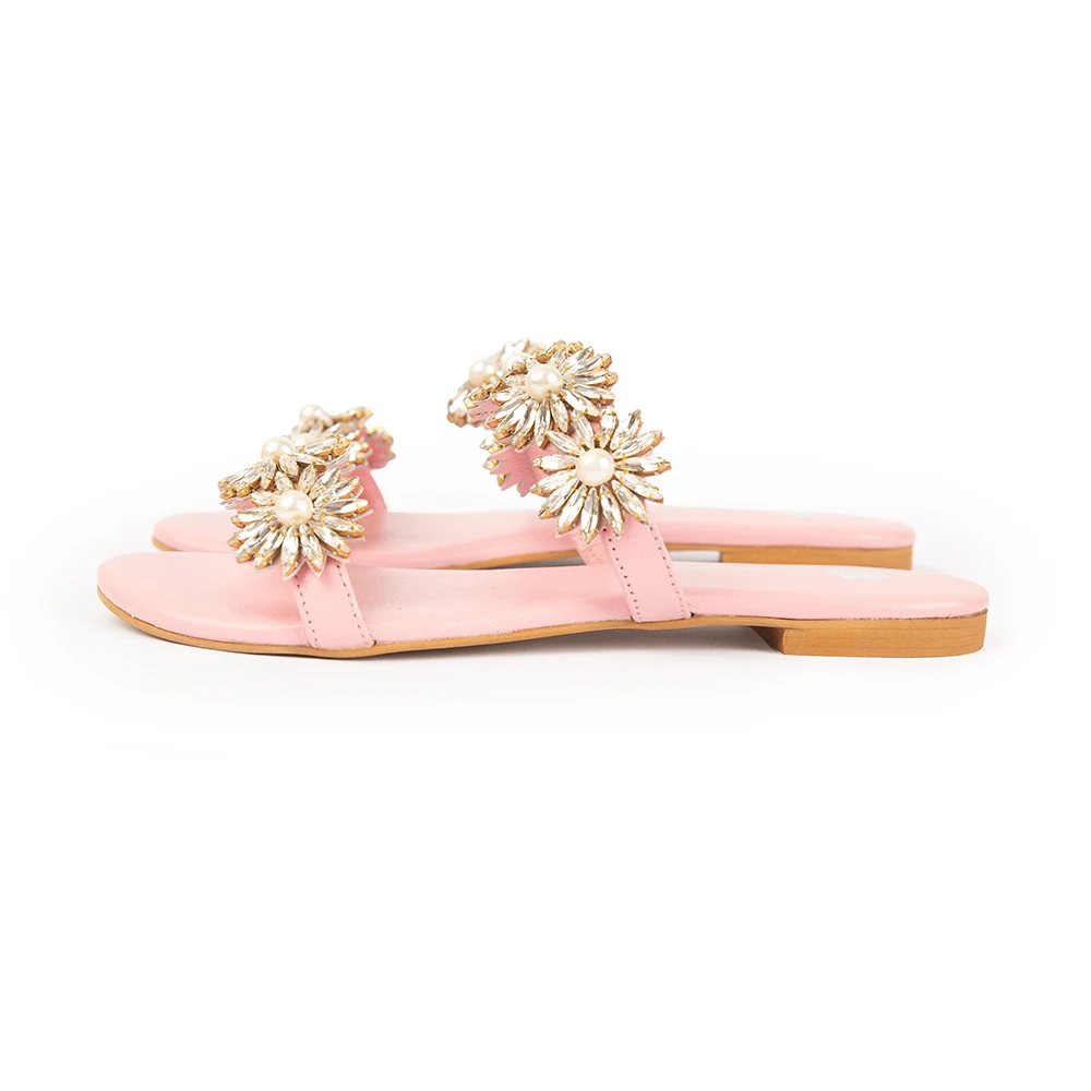 An elegant leather sandal adorned with 196 individually handcrafted crystal flower embellishments, each detailed with pearls and precision-set stones. Meticulously made with painstaking worksmanship, this design brings refined pearls and precision-set stones. Meticulously made with painstaking worksmanship, this design brings refined
