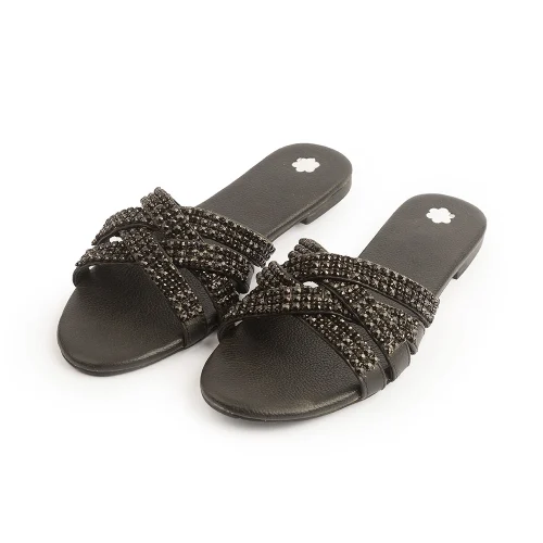 Gleaming with crystals, these genuine leather slides feature elegantly overlapping straps that catch the light with every step. Designed with a cushioned footbed for all day comfort, they balance sophistication with effortless wear – perfect for festive evenings or adding sparkle to everyday looks.