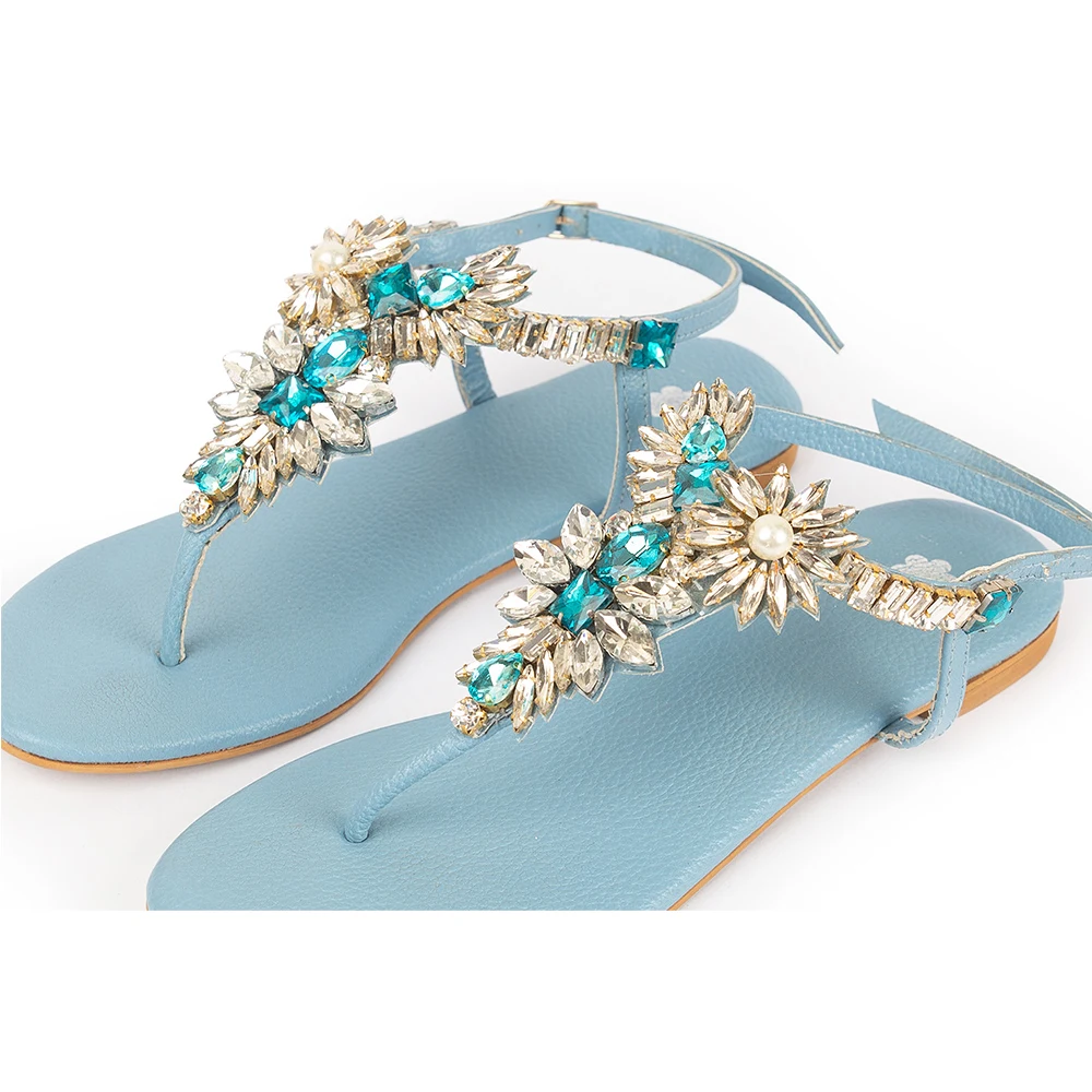 Crafted in soft leather, this elegant sandal features crystal floral embellishments with individually hand-stitched stones and pearl accents. Each pair is meticulously handmade, making every piece unique and exclusive. Perfect for occasions when you want glamour and sparkle while staying comfortably flat
