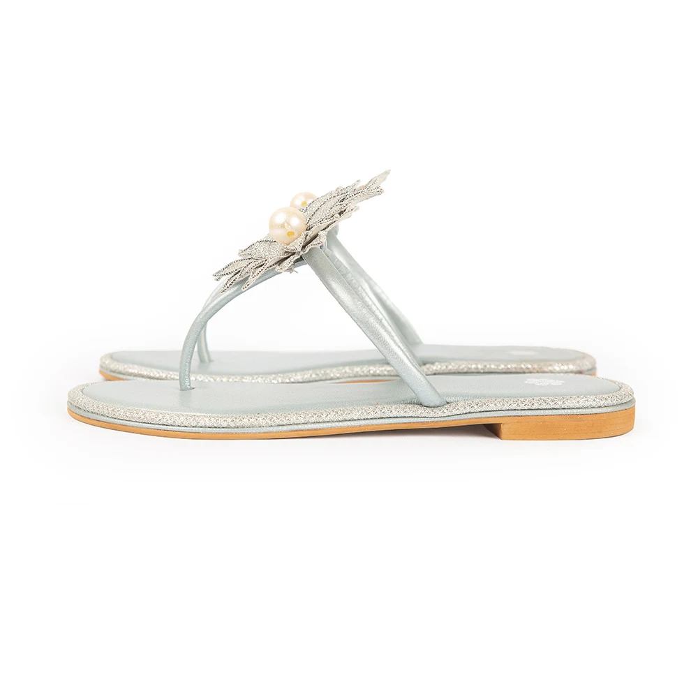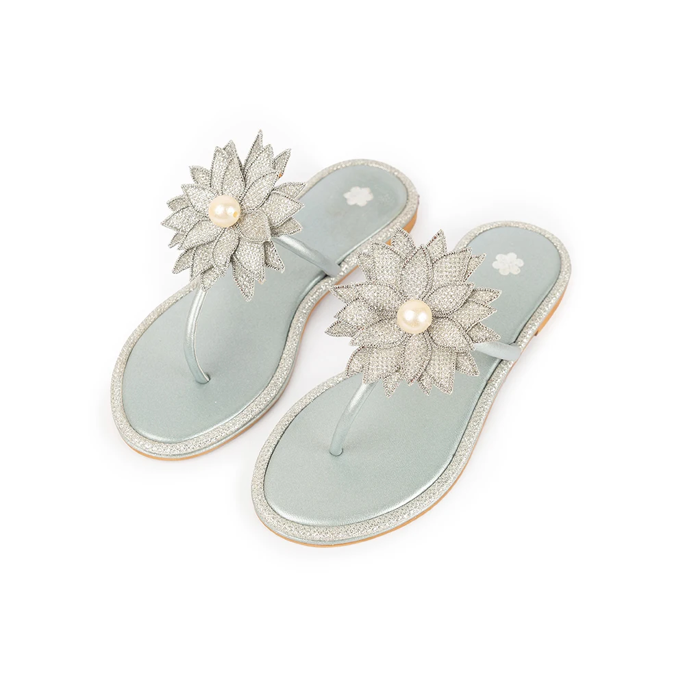 Elegantly designed in soft leather, this sandal is adorned with a handcrafted crystal flower featuring delicately layered petals and a pearl centerpiece. Carefully handmade with detailed workmanship, it delivers a refined and occasion-ready look while keeping you comfortably stylish